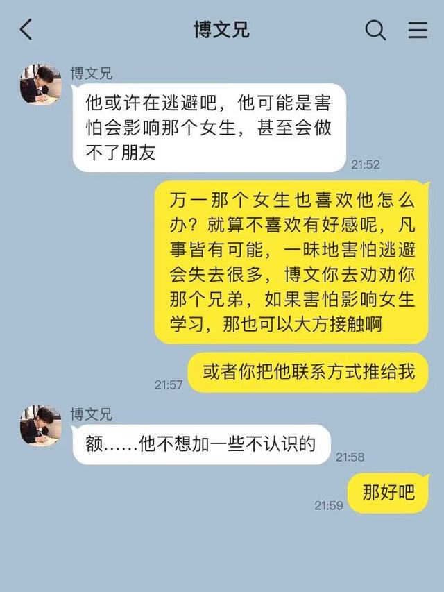 所以他就选择去找他的那个朋友聊聊