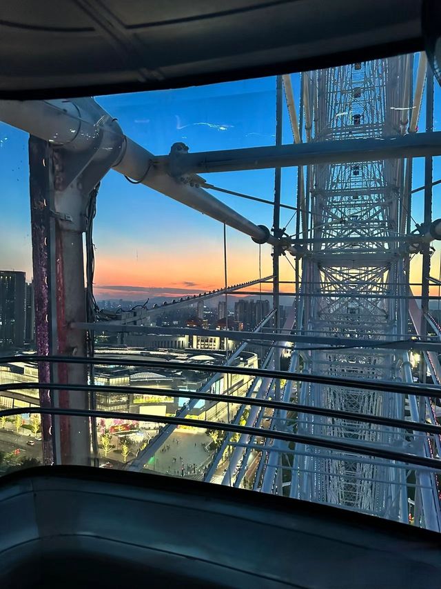 摩天轮缓缓升到高处,马上到最高点。