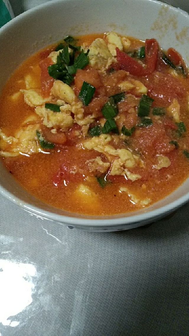 苏落落:西红柿炒鸡蛋,嘿嘿~特地多放了一点汤泡饭吃😍(某"猪″的"最爱″🌚🌚)