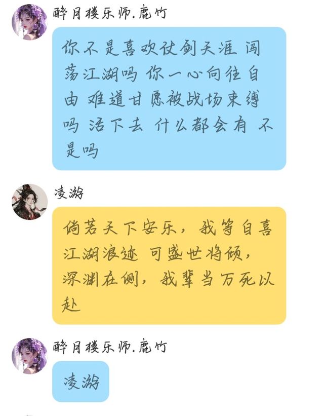 凌游:如今我愿百姓安居乐业 人间炊烟不断 千里绵延,也愿鹿竹成为她想成为的人 一世平安