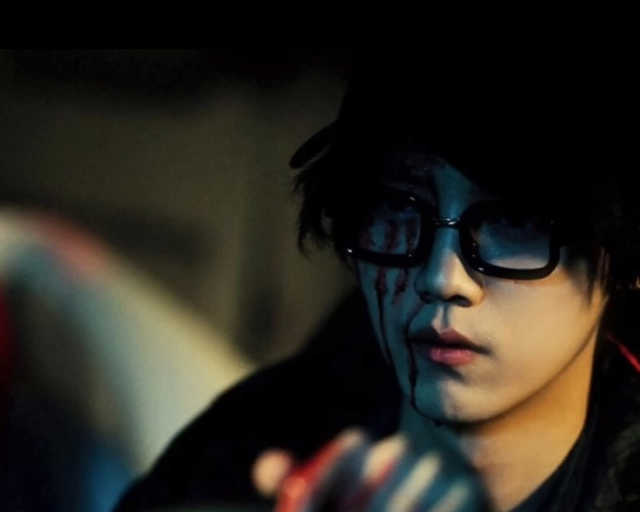 太阳落山,鹿晗换上黑色风衣戴上黑帽子