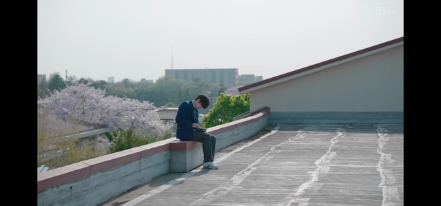 正在独自坐在天台的忧郁的若林突然听到门口传来声音,赶忙从口袋里翻出口罩带好。