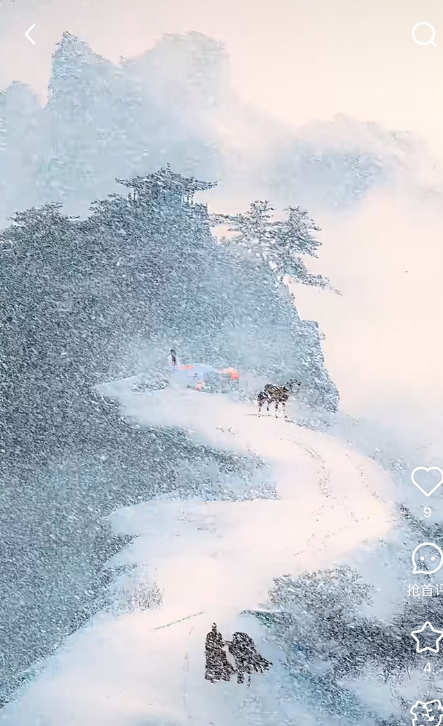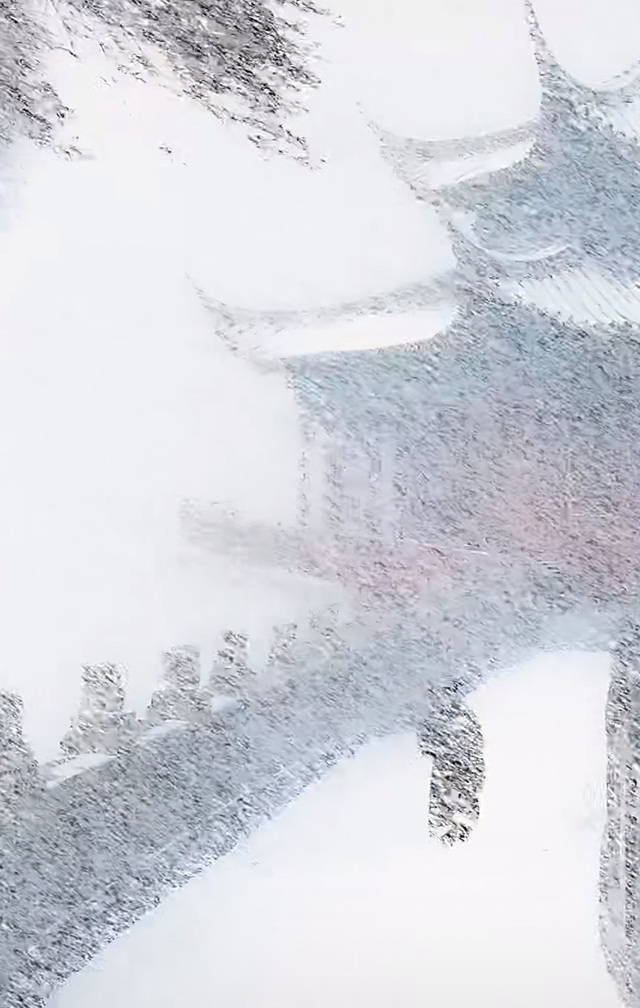 经过不懈的努力到达寺庙,寺庙被雪覆盖,白雾缭绕,貌似在另一个仙界一样。