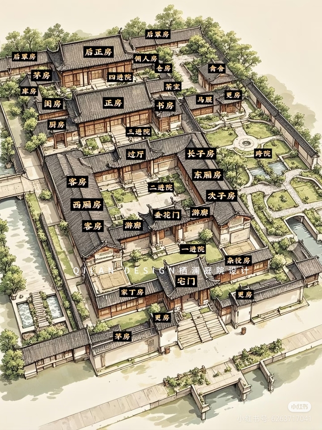爸爸:诺宝,爸爸大概走了一边这四进院的四合院,结构大概是这样的