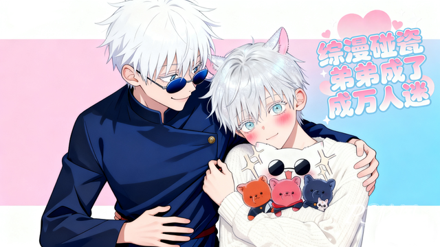 阳光透过窗户,温柔地笼罩着紧紧相拥的兄弟二人,空气中漂浮着细微的尘埃,仿佛也在为这场重逢跳着祝福的舞蹈。床头柜上,那个精美的甜品袋微微敞开着,露出了里面五条悟特意买的、据说弟弟以前最喜欢的毛豆生奶油喜久福,甜丝丝的香气悄然弥漫,混合着消毒水的味道,构成了一种奇特却无比温馨的氛围。