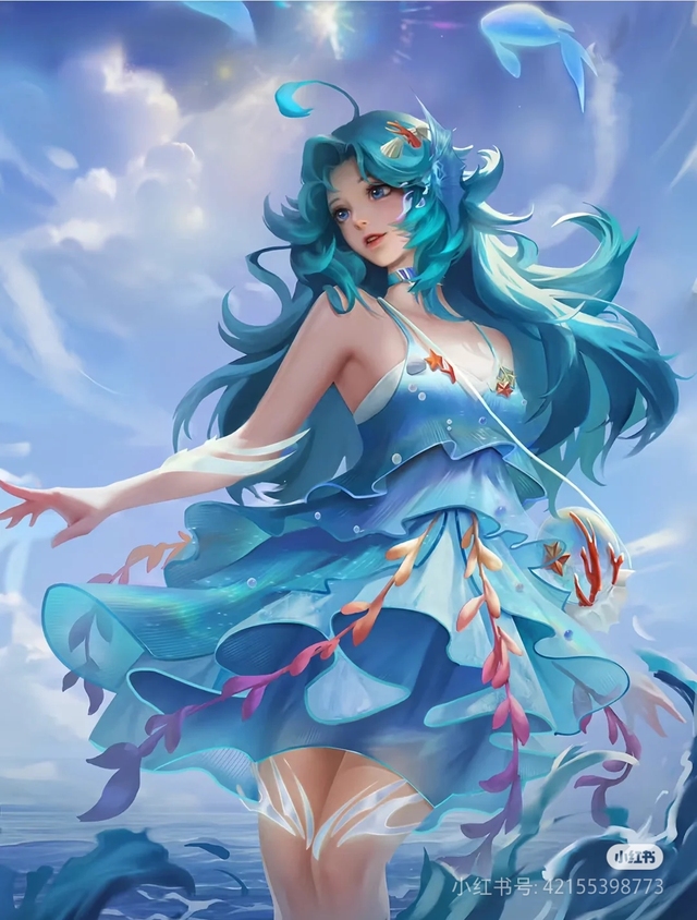 南宫春水的眼眸中泛起温柔的光芒,轻轻伸出手,指尖温柔地拂过那如梦似幻的蓝发,声音低沉而充满温情: