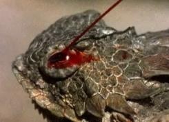 吓得这只角蜥使出了御敌绝招,一股殷红的鲜血从它的眼睛里直射而出。