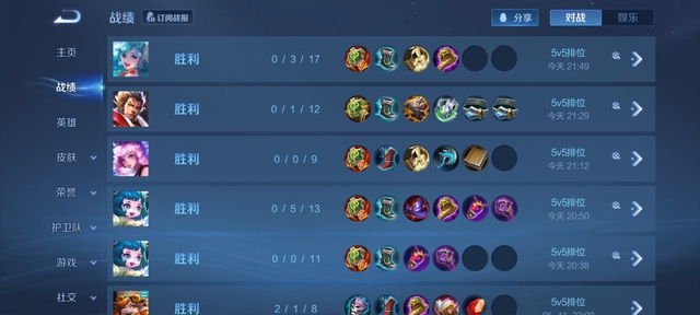 羊羊羊:看看我昨晚的战绩!虽然全是躺的,但赢了啊哈哈哈哈哈
