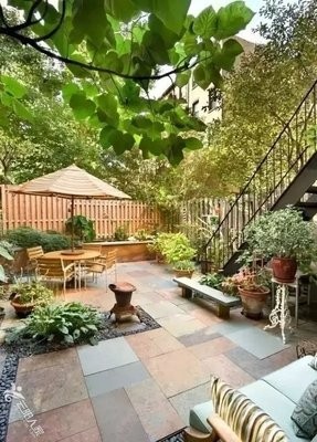 后院比前院大得多,也是走的极简风,有道楼梯通往二楼,看起来还是个二层小洋房。