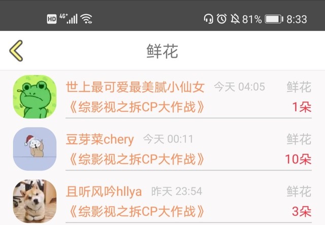 自成方:感谢三位小可爱送的花~