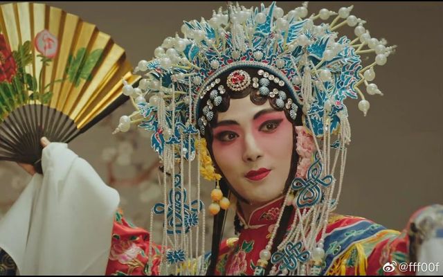 “大王,且听我一言......”解雨臣头戴凤冠,身着粉红色绣花戏服,右手拿着铂金印花扇子,嘴角微笑,看着台下人。
