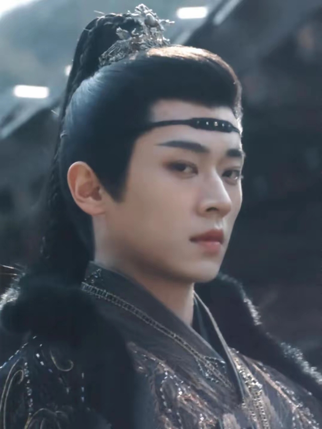 一匹高头大马昂然而进,马上之人身披黑衣刺金斗篷长袍,下摆一圈黑色的狐狸毛显得华贵而内敛,他一头漆黑的长发披散在身后,马上身姿挺拔,侧脸轮廓英挺,眉眼间带着傲视一切的冷漠和俊美。