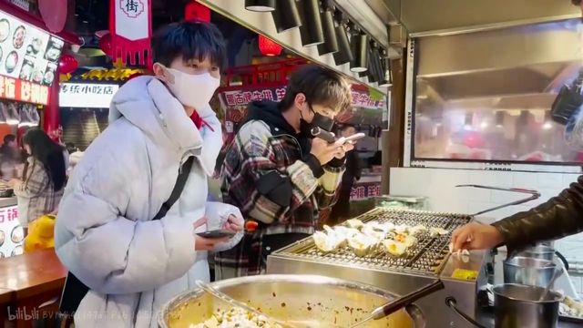 拿到了糖油粑粑的丁程鑫开始吃,秦霄云望向后面看着马嘉祺去问问生蚝。