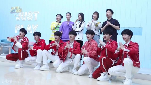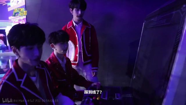 舞台中央在和辣子姐在学习彩带的丁老师,玩的不亦乐乎开始和摄像机玩乐。过来一会在追着丁程鑫的宋亚轩,准备拿回宝儿和自己的手卡的宋亚轩。