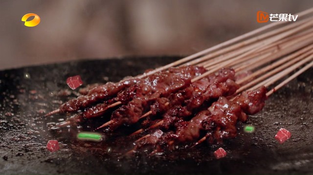 韩东君在做弄烧烤大火下动作不赖造型要帅!!