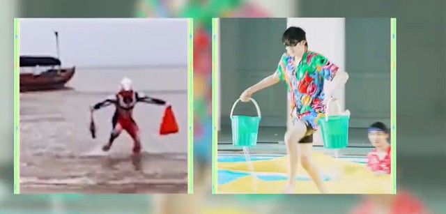 宋亚轩努力上岸出发就摔先摔了,但这个走过去的姿势太像奥特曼那个图了。