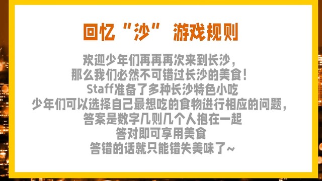 士大夫:那我们就玩一个我们在长沙之前玩过的一个游戏,我们这个名字叫回忆“沙”好嘛