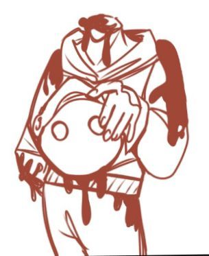 书页上出现了一张照片,整张画面都有血迹。怪物员工的脑袋待在地上,脑袋上裂开一抹笑,身体处滴着血,有种快融化的感觉。