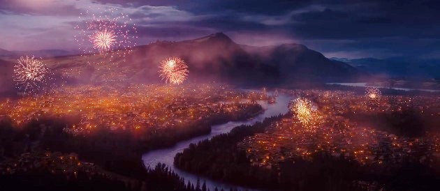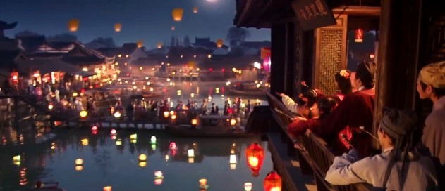 夜幕降临,烟花绽放在天际,花灯徐徐上升,灯火交相辉映,街上行人酒楼茶客欢呼震天,笑声晏晏。