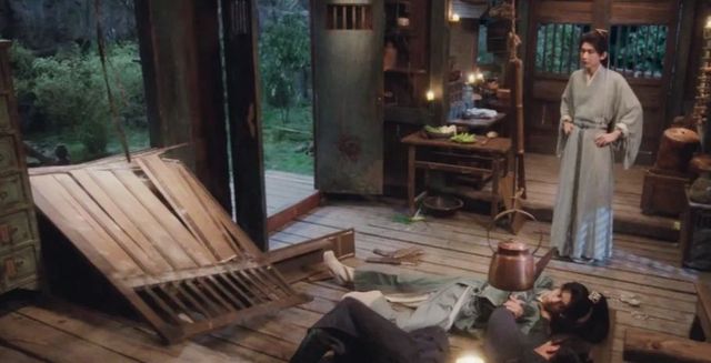 李莲花正在认真的创作新菜品,屋子里弥漫着一片浓烟,葛潘手脚被束缚在桌角,被呛得涕泪交加,苦不堪言