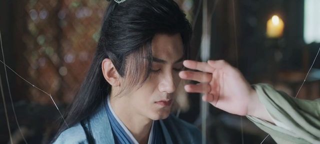 笛飞声盘膝坐在榻上,李莲花则将绑着细丝的银针,一根根精准地插入其体内的穴位