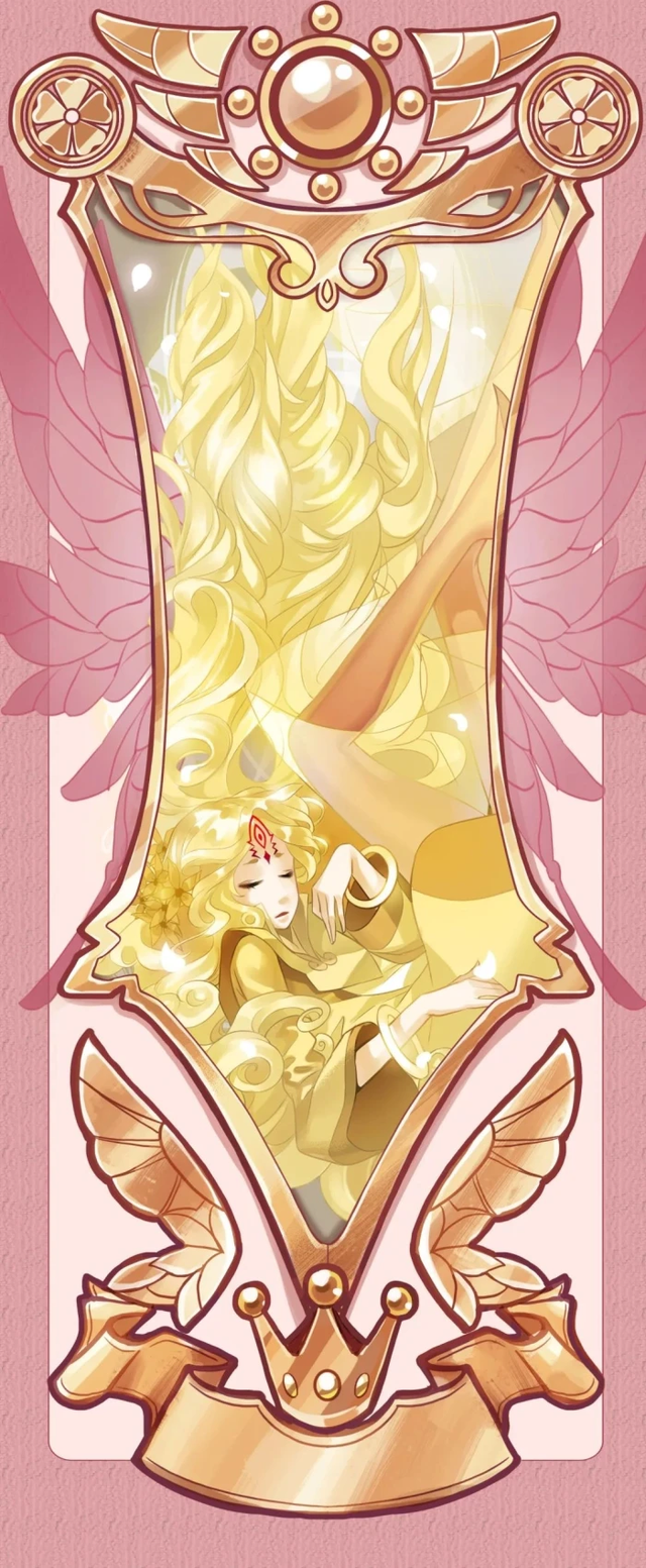 谛听转身,双手聚岀光波,幻化出金色竖琴。