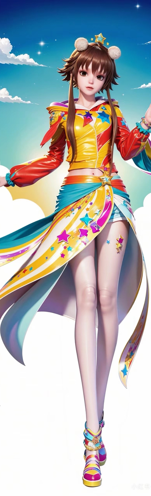 就在亮彩强行斩断了建鹏的契约后,她整个人也换上了一套色彩缤纷的服装,浑身上下点缀着各种颜色的星星图案。