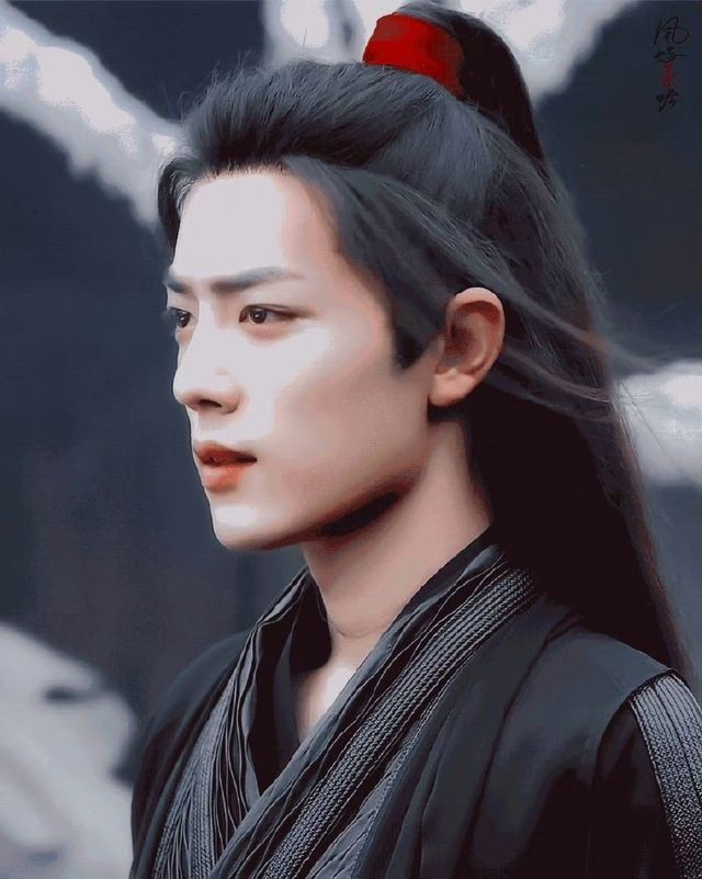 只见迎面走来的是一身着墨黑色衣裳的男子,红丝带束缚着他那乌黑细致的头发,额前也有些许的碎发散落着。