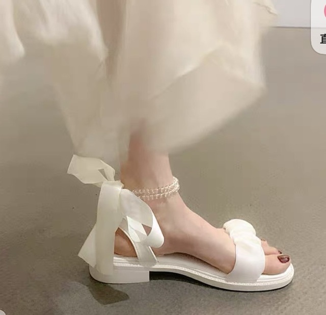 等主持人介绍完后,阮年穿着白色中长裙,微微带跟的凉鞋,脚腕是两串珍珠,后面是白色丝带系成的蝴蝶结