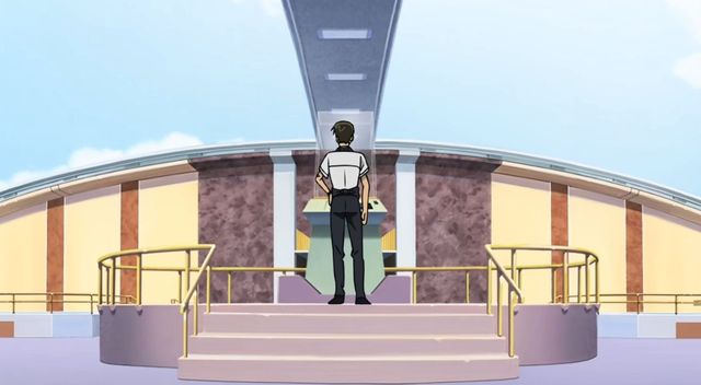 然而,当小兰来到天空观景台的时候,下了电梯却发现有一个人正站在玻璃柜前,见状小兰看着他的背影不禁有些疑惑地径直朝他走了过去。