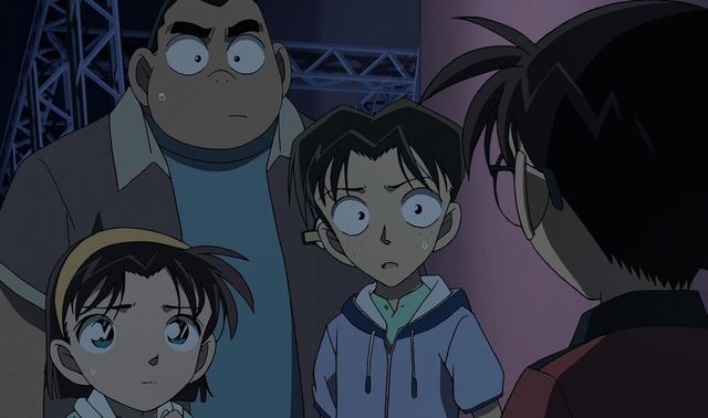 听完他们的话后柯南看着他们始终想不明白这件事,而步美和光彦解释完后三人不禁对视一眼后元太说道