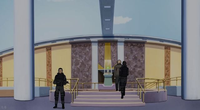 另一边,铃木次郎吉则是被红暹罗猫的首领挟持着坐电梯来到了天空观景台,接着便来到那颗宝石面前。