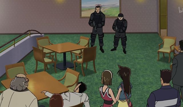 中森警官见状走了过来,小兰也随即来到中森警官的旁边看着背对他们的那两人,然而,就在小兰和中森警官想着可以趁机制服他们的时候。