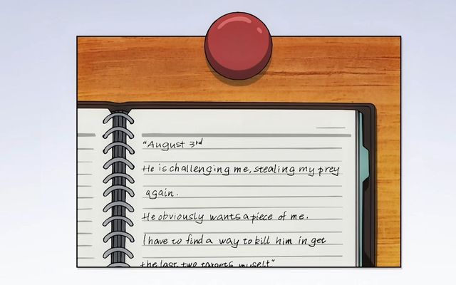 白鸟任三郎:"8月3日,那个家伙又抢走了我的猎物,意图挑衅,这摆明了是在对我下战帖,无论如何都要杀了他,一定要由我亲手将剩下两只猎物……"