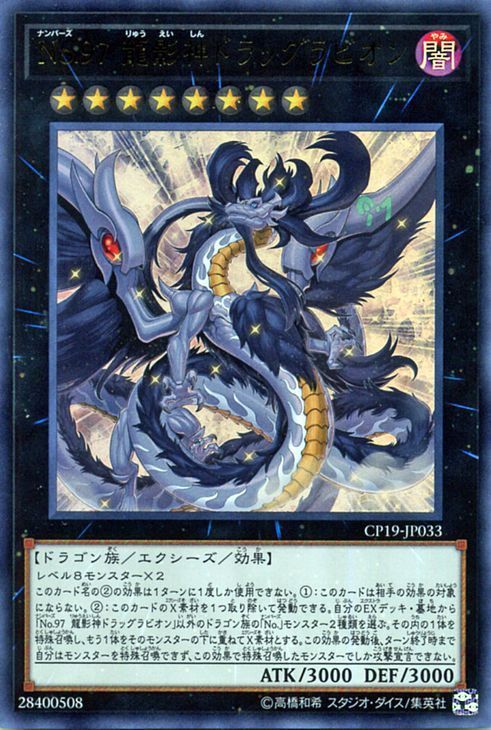 ②:把这张卡1个超量[2] 素材取除才能发动。从自己的额外卡组·墓地选「编号97 龙影神 引力子龙[2] 」以外的龙族「编号[2] 」怪兽2种类。那之内的1只特殊召唤,另1只在那只怪兽下面重叠作为超量[2] 素材。这个效果的发动后,直到回合结束时自己不能把怪兽特殊召唤,不用由这个效果特殊召唤的怪兽不能攻击宣言。