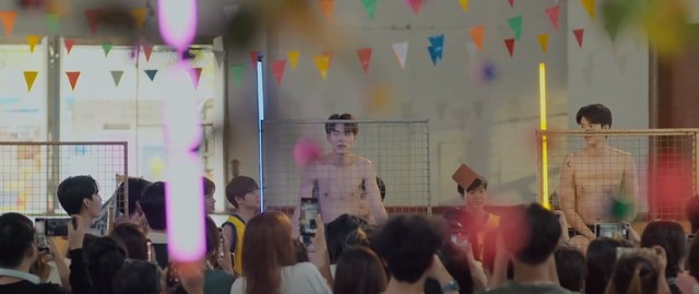 小鲜肉落水果然是最为火爆的节目,围了好多人,后面大家起哄让sing,zen,ryu上去,大家起哄中三人无奈的上去了。网上点赞量也是一路飙升。
