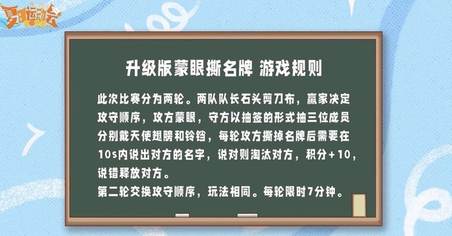 随便:主持人『好,接下来我们来到第二大环节的比拼,全队蒙眼撕名牌大战~~~』