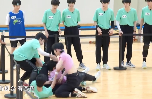 场上,马嘉祺被撕了,贺峻霖和张极直接躺在地上,不让红队的人撕