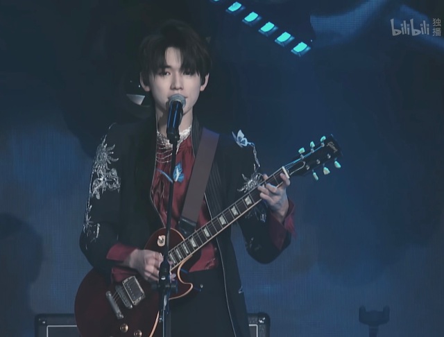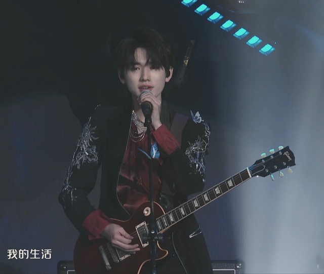 接着幕布里一只青色的燕尾蝶煽动翅膀,光芒下,击鼓的宋亚轩,弹吉他的张真源以及打架子鼓的马嘉祺一一亮相