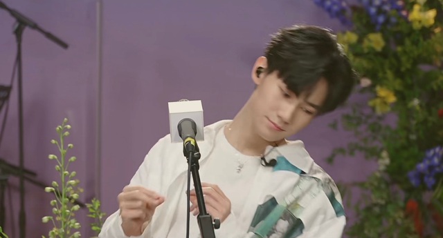 粉丝正沉浸在张真源低沉温柔的嗓音中,他的声音忽然变得嘹亮,眸中有光闪动