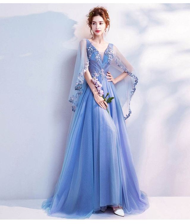 我选择了一身水蓝色的礼服,没有那么的华丽但又不失优雅,这是我觉得最好的搭配
