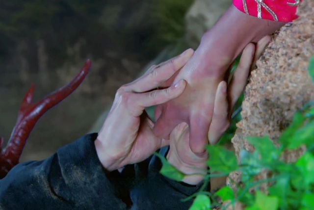 陆涵之:(不,我不能放手,我不能)使劲的拉着藤条(你也千万不可以放弃,我一定能撑到有人来救我们的,相信我)