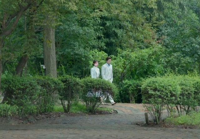 微风轻轻吹过脸颊,带来一丝春天的味道,那清新中夹杂着泥土的香气,仿佛还揉合了鲜花的甜美。沉浸在这花香与土香之中,心爱的人恰好就在身边,两人悠然漫步在小径上。阳光洒在他们身上,他们都穿着淡蓝色的衣服,看起来极为和谐般配,此去经年,应是良辰好景虚设。便纵有,千种风情,更与何人说。