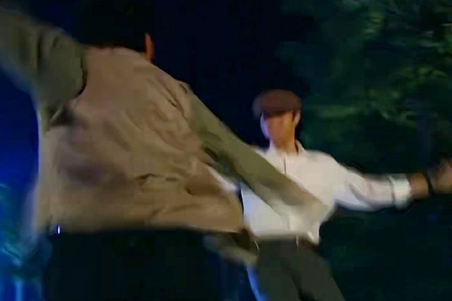 另外一边,尔豪早已严阵以待,堵住了他的去路。尔豪高大的身影如同一座不可逾越的山峰,他眼神坚定,面容冷峻。阿青看着前后被堵的局面。