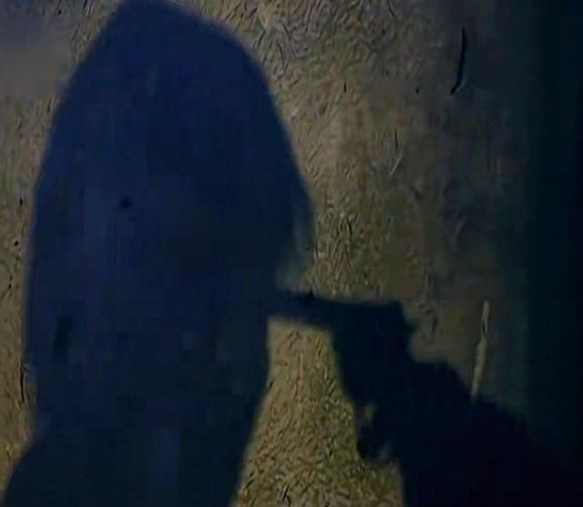 涵之立刻警觉地扫视四周,最终目光锁定在墙上那道异常的阴影上——一把冰冷的枪管正紧紧抵住阿青的太阳穴。那阴影犹如夜幕下矗立的山峦,沉寂而威严,散发出令人心悸的压迫感。