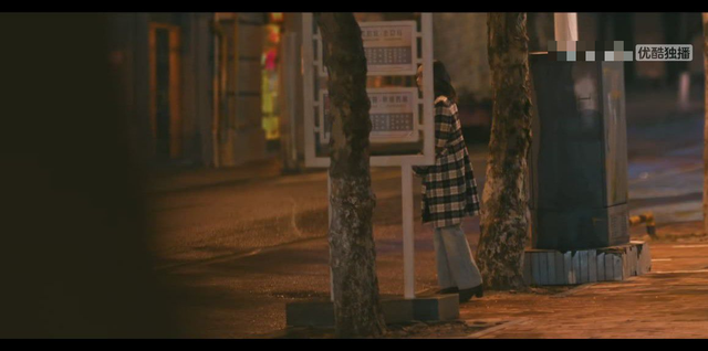 脚踏着雨水,一步步的走着,女人到了家里,开了灯,男人看到后也离开。