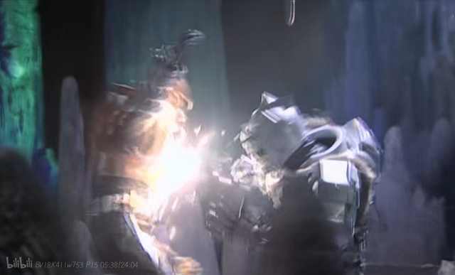 雪獒侠一步一步地走来 霸王只好拿出土影石