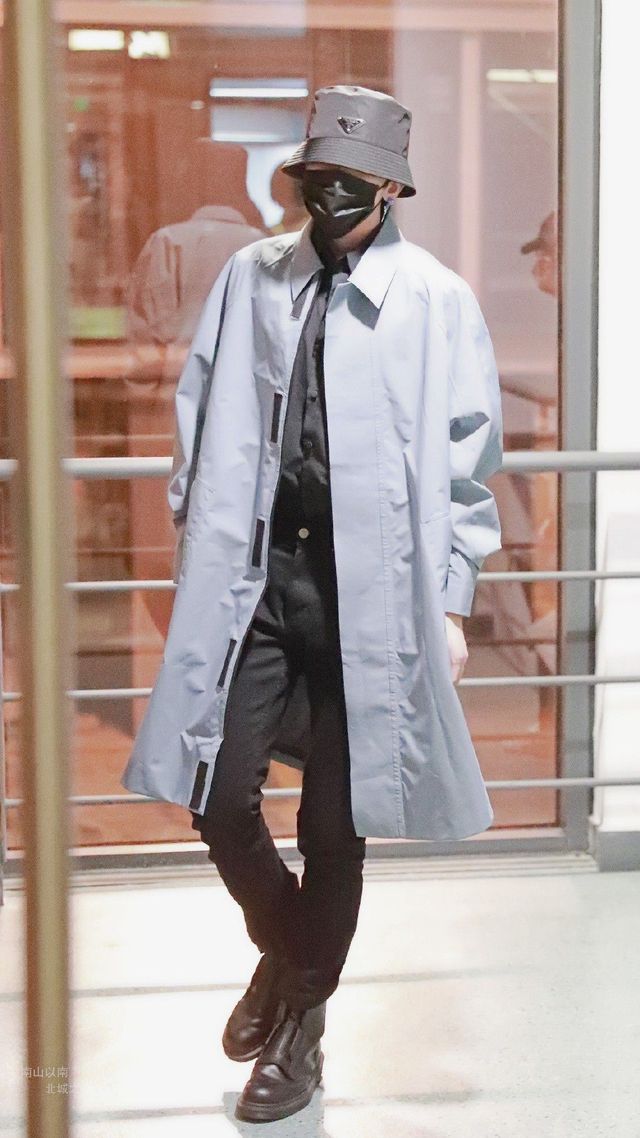 蔡徐坤不知道发生了什么,但显而易见他成了这里的焦点,为了不被人发现,蔡徐坤赶快把帽檐压低,低头快行,只想快速穿过这条人群密集的走廊。
