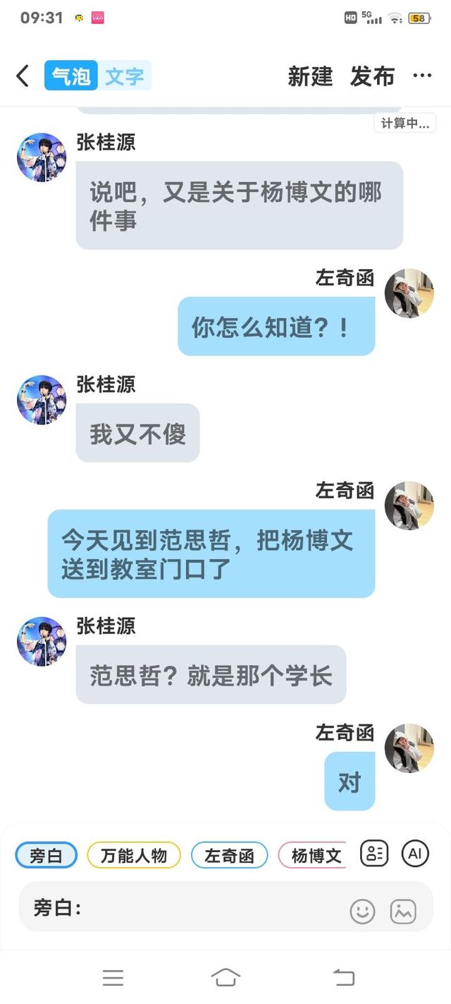 杨博文:老师让我送书,碰见了一个学长,他把我送到教室门口就走了,然后我跟左奇函说话,他很冷漠