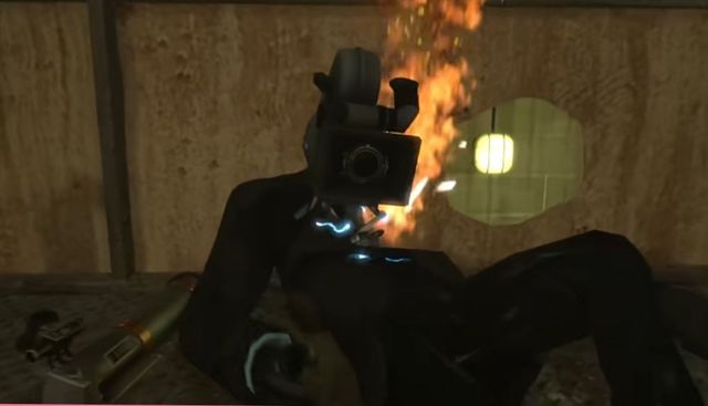 无双战神转过身看去,闸门正要关上,摄像人正准备逃离,突然一发火箭弹射倒了摄像人,电工马桶正想撑开门,但被摄像人的一发火箭弹轰退了